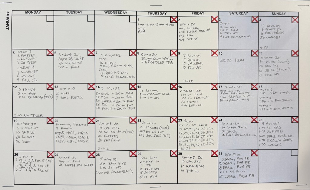 Januuary 2026 Workouts